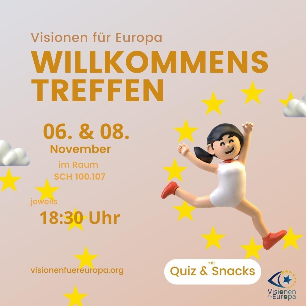 Ihr seid daran interessiert, mit uns Reisen nach Brüssel und in andere europäische Städte zu planen, Beertastings auszurichten, bei einem Kaminabend gemeinsam einen Film zu schauen und europäische Themen zu diskutieren? Dann kommt gerne vorbei am 17.04. um 18:30 Uhr zu unserem Einsteiger:innentreffen. Wir treffen uns im Raum U43/44 (UG) in der KSHG, Frauenstr. 3-6.