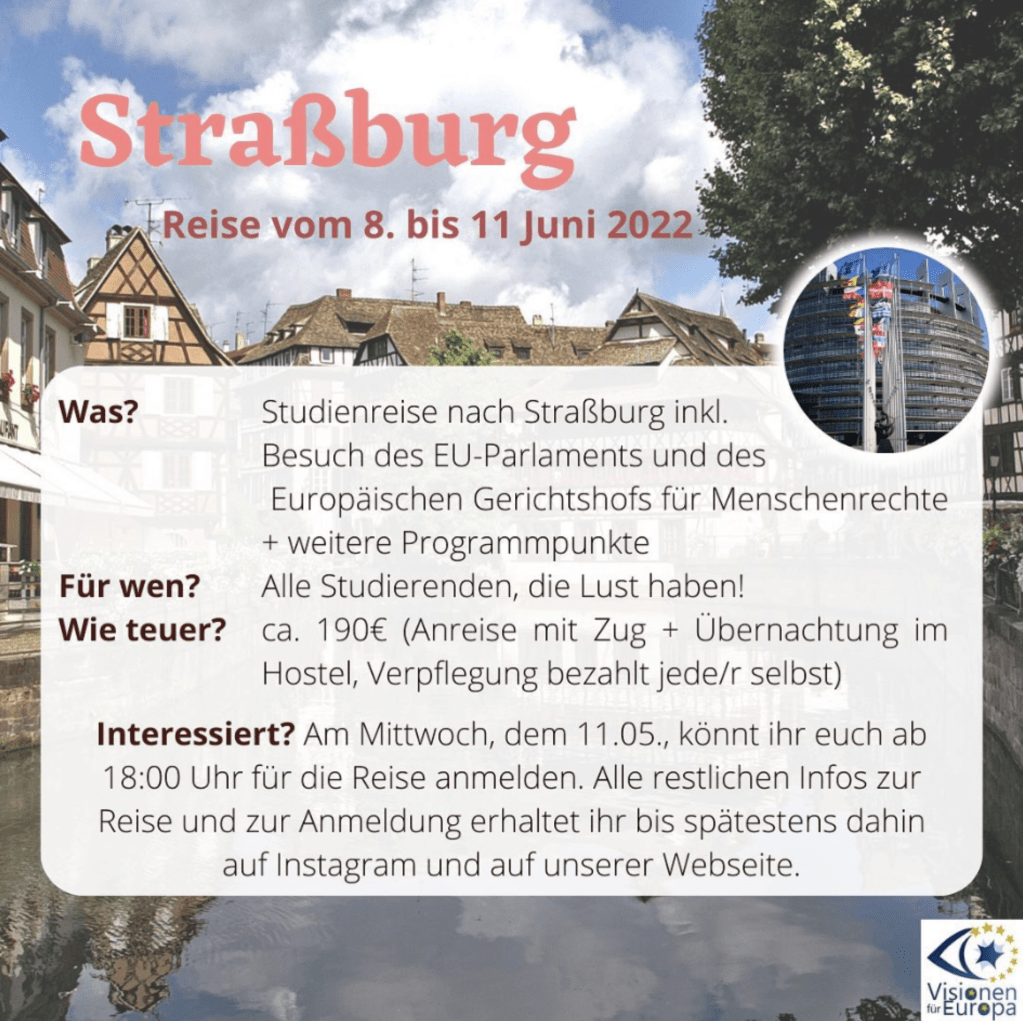 Für erste Rückfragen kontaktiert uns gerne per Mail (visionenfuereuropa.ms@gmail.com) oder über Instagram (@visionenfuereuropa).