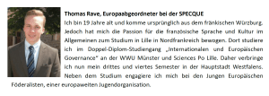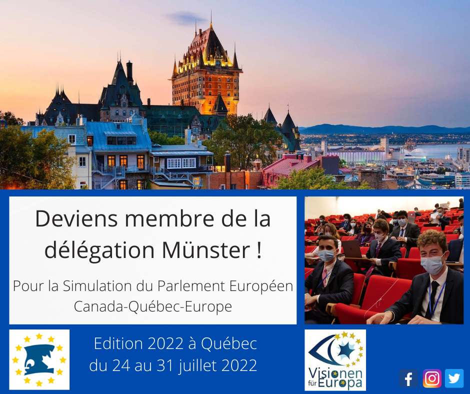 Interessiert? Du findest Europapolitik spannend und Französisch macht Dir auch Spaß? Dann werde Teil der SPECQUE Delegation 2022! Schicke uns bis zum 31. Januar 2022 ein kurzes Motivationsschreiben und einen Lebenslauf (beides auf Franzöisch) an visionenfuereuropa@outlook.de. Hâte de vous rencontrer!